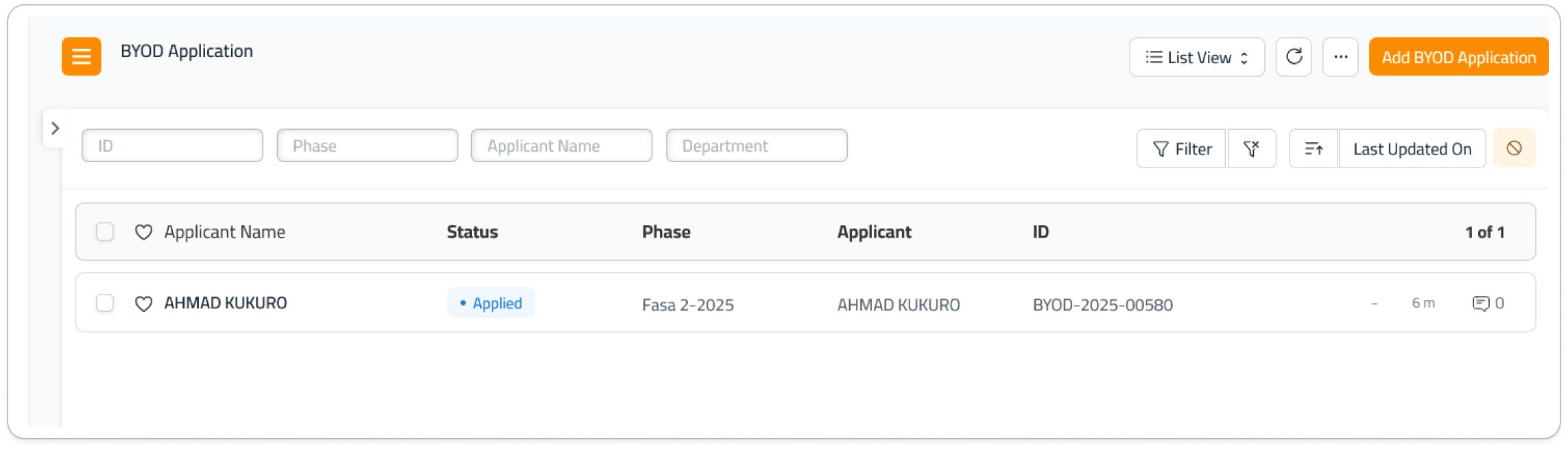5. Status Applied akan dipaparkan jika anda telah selesai memohon BYOD Application.