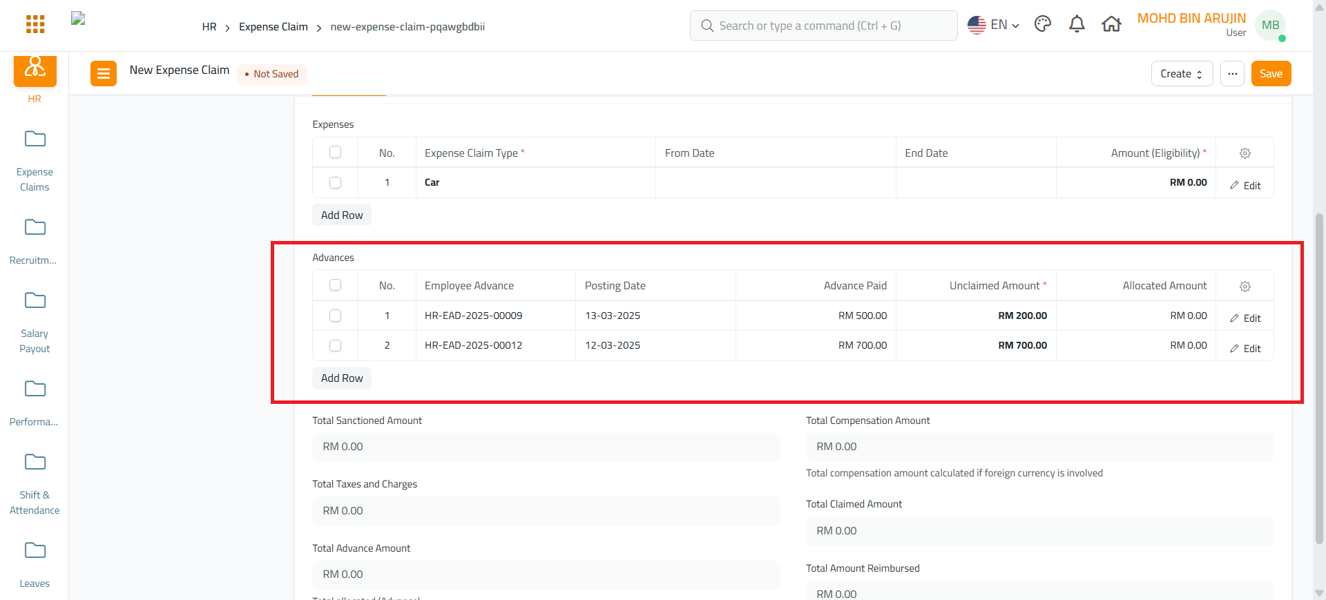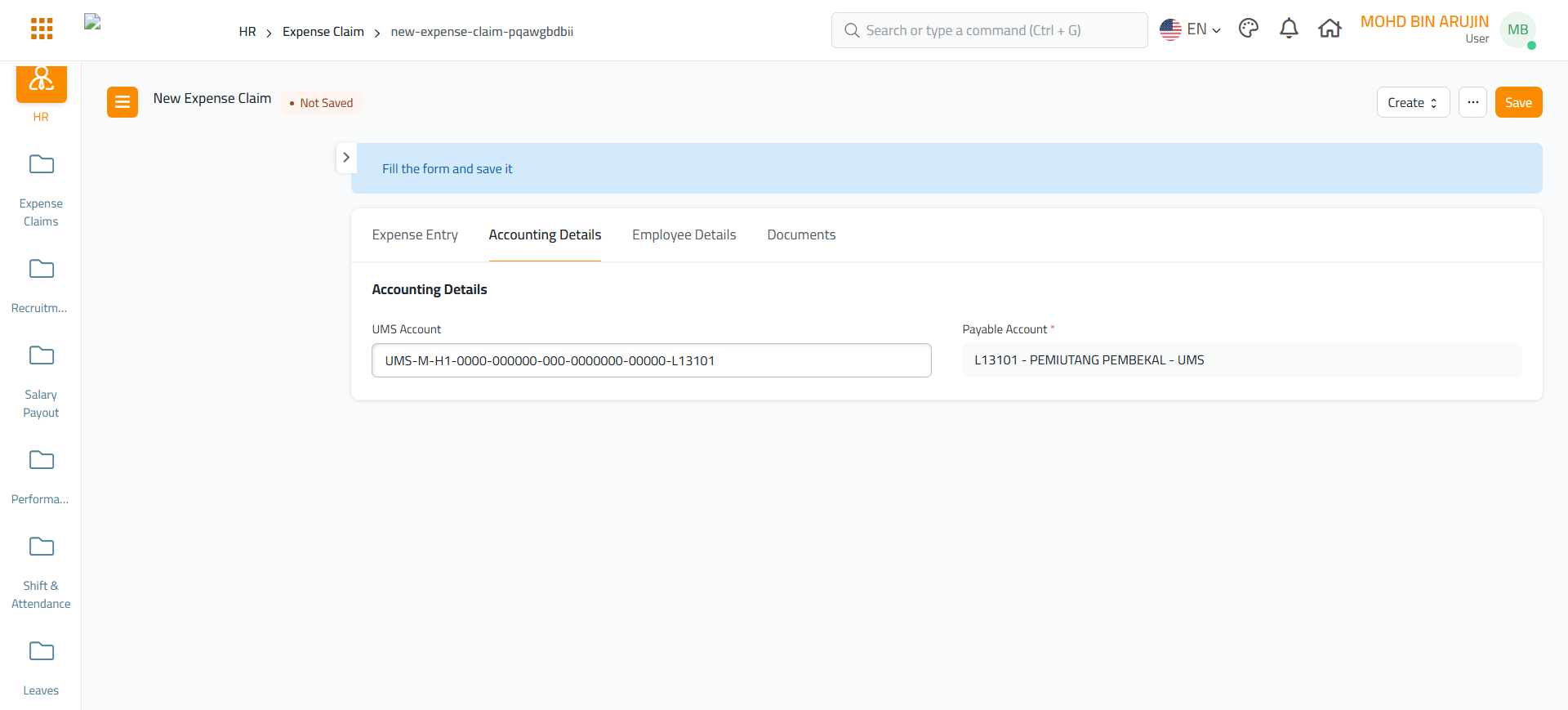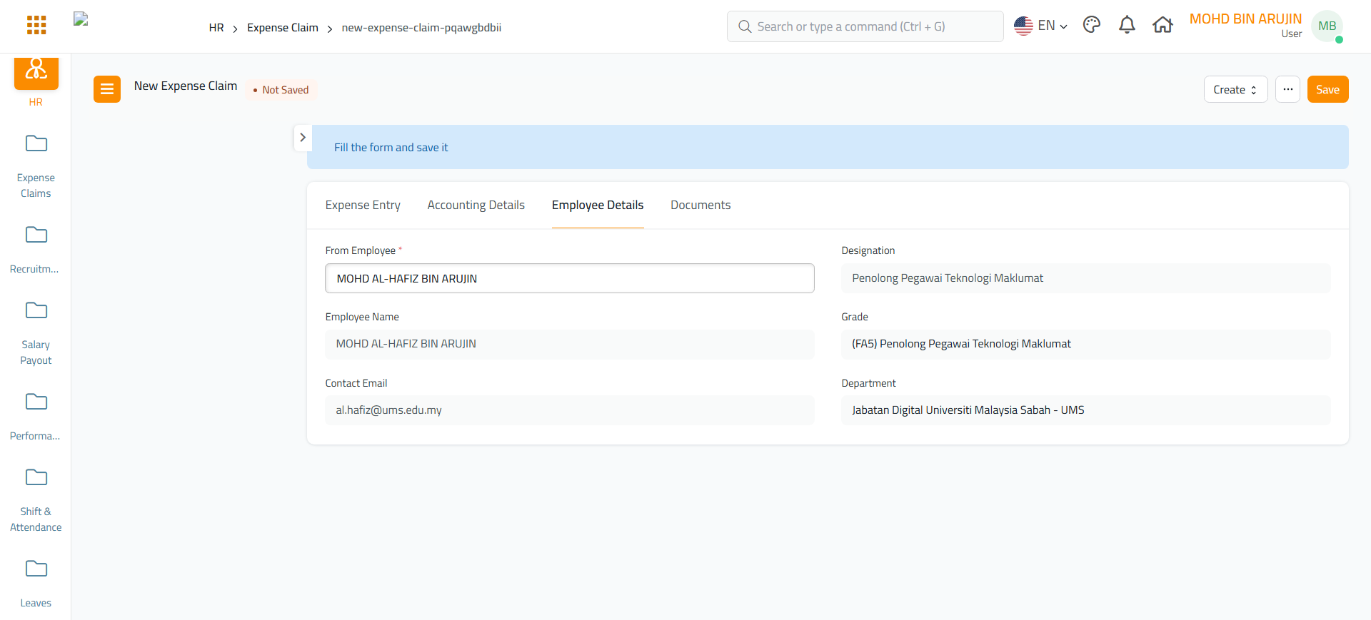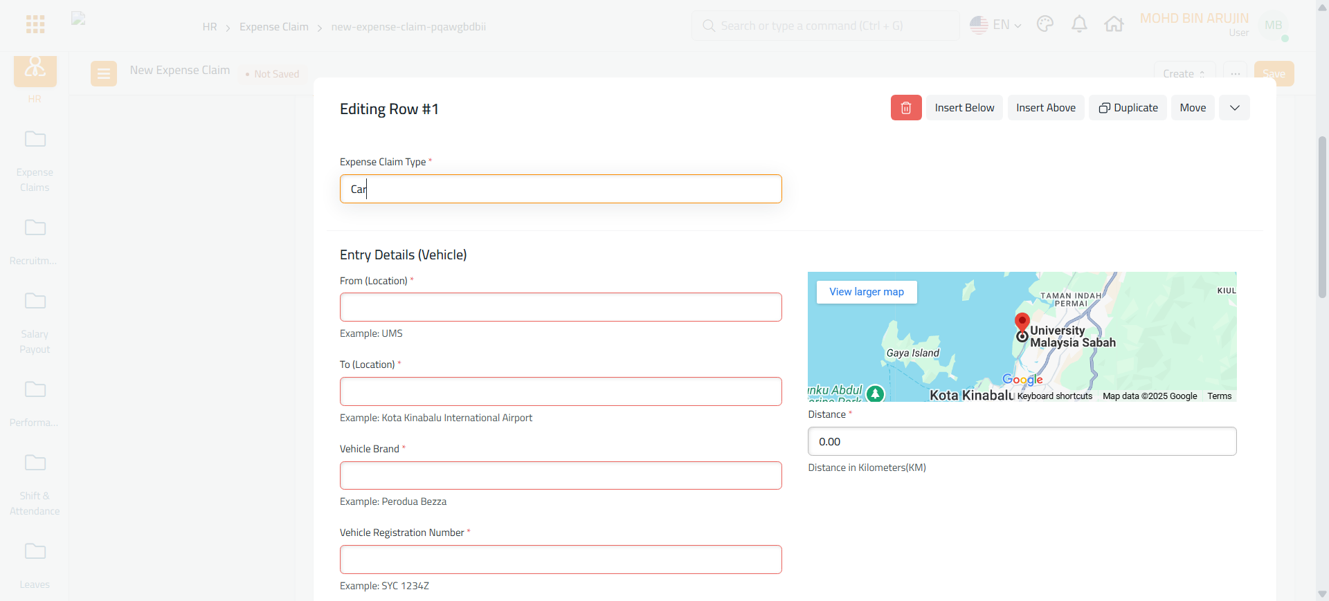 Pergi ke modul HR > Expense Claim > Expense Claim.