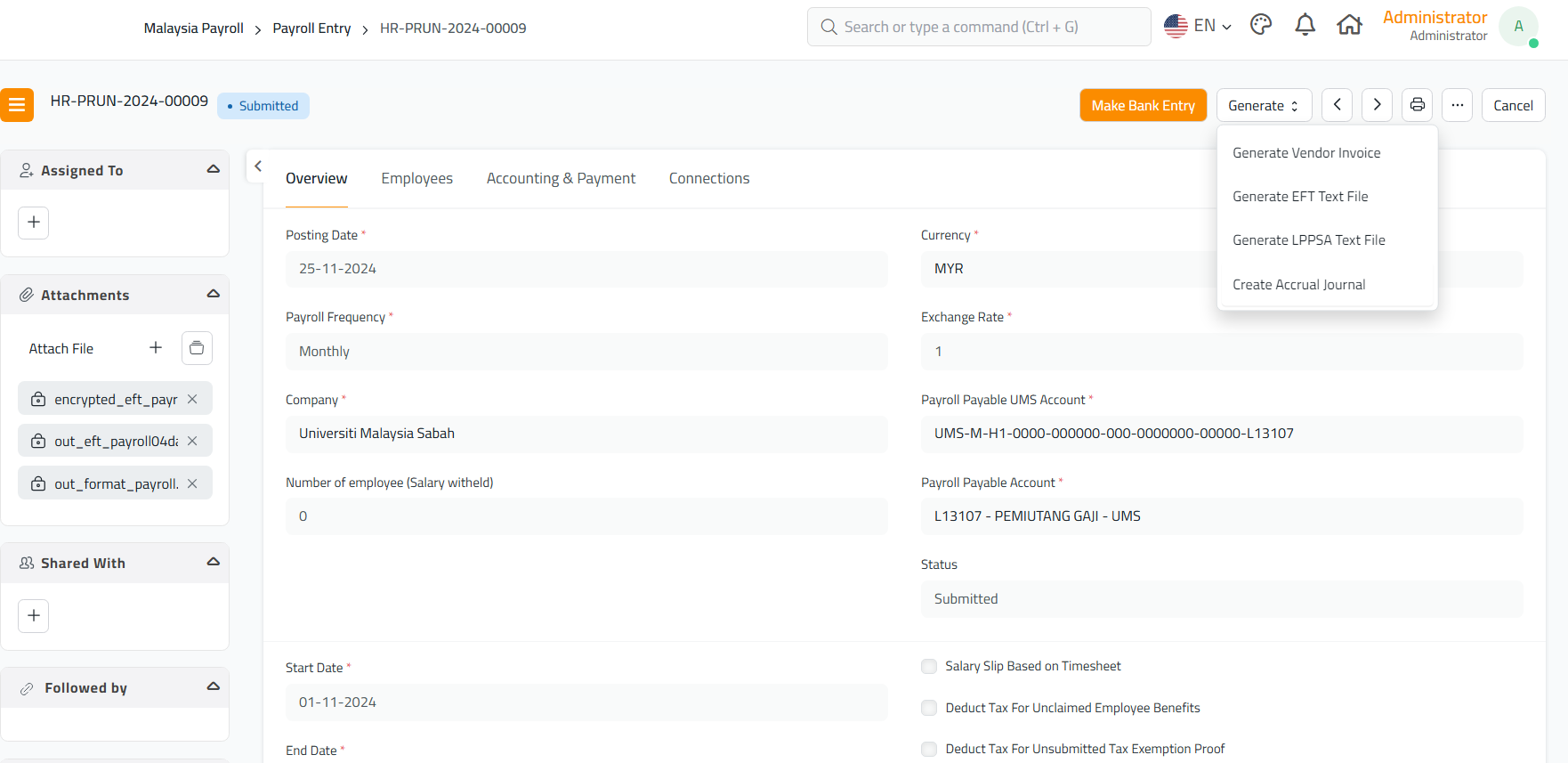 • Gunakan out_eft_payroll.txt untuk semakan atau penghantaran manual.