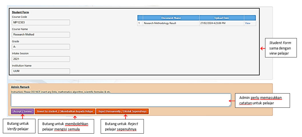 untuk admin bagi mengesahkan Research Methodology Result (RMC) pelajar.