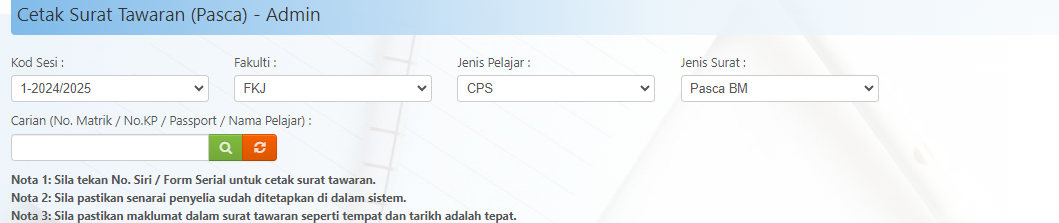 SENARAI SURAT TAWARAN PELAJAR PASCA (ADMIN)