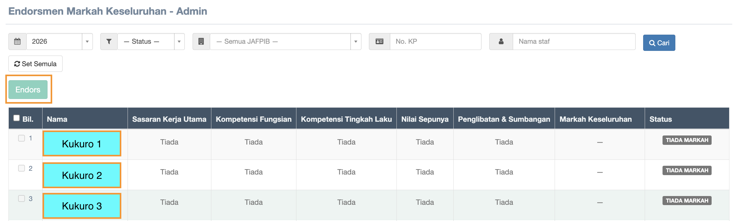 - Endorse Markah Keseluruhan