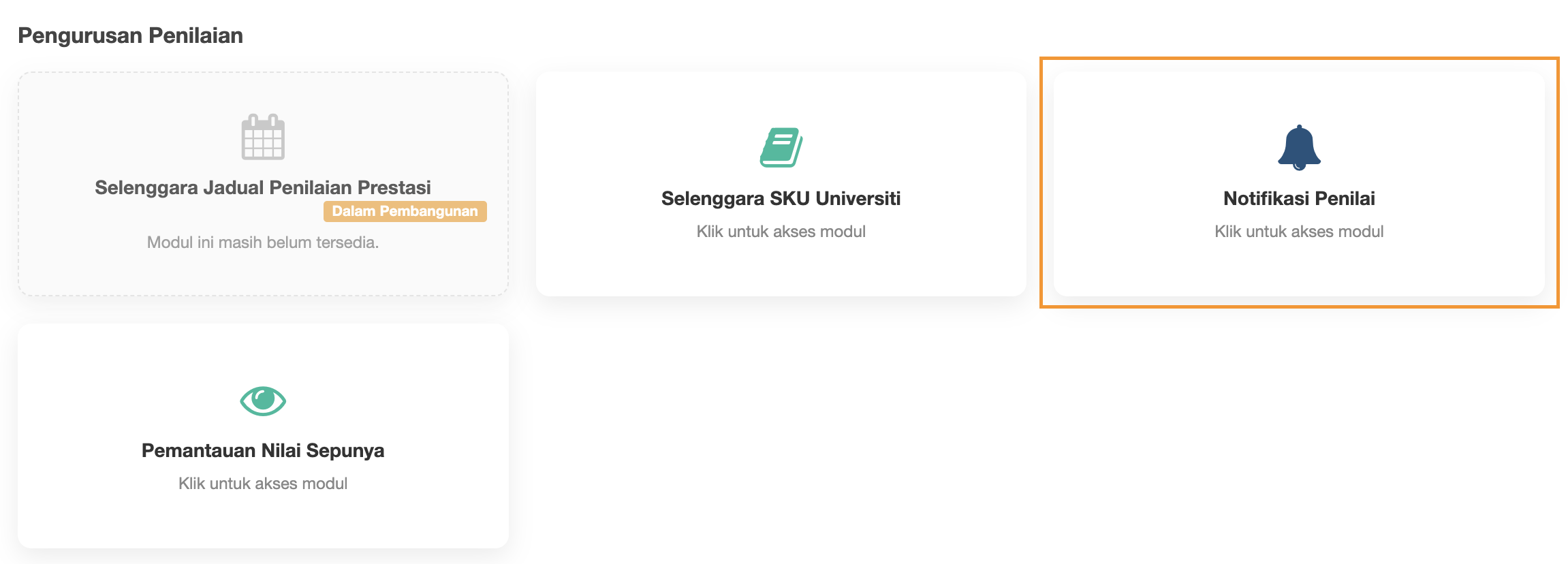 Dashboard Pentadbir BPSM - Notifikasi Penilai