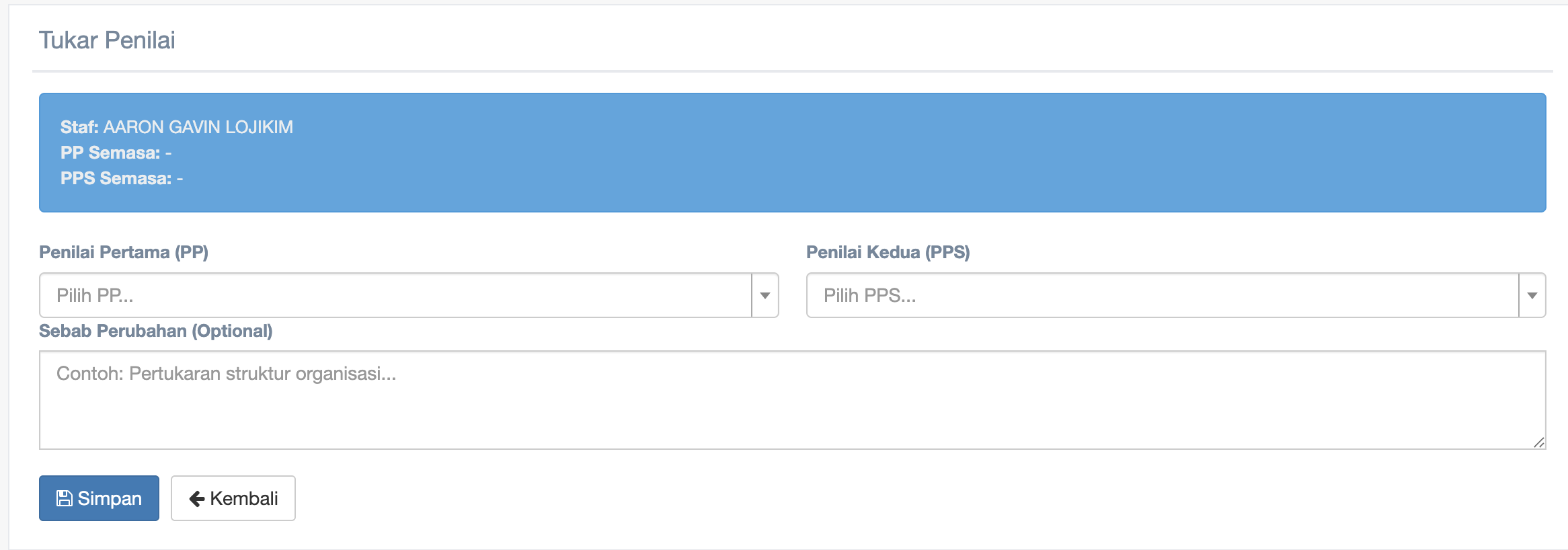 Tukar Penilai or pilih penilai