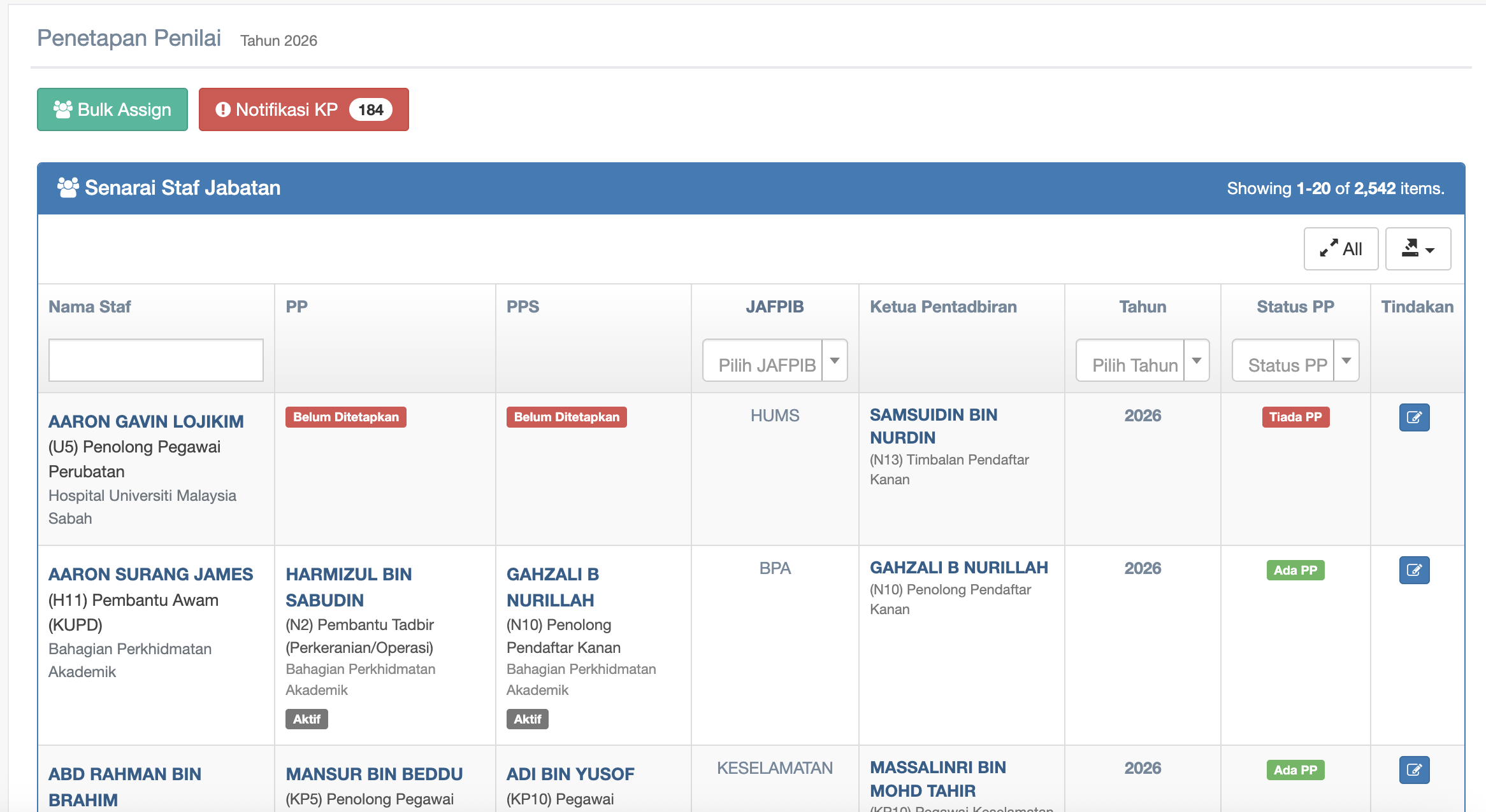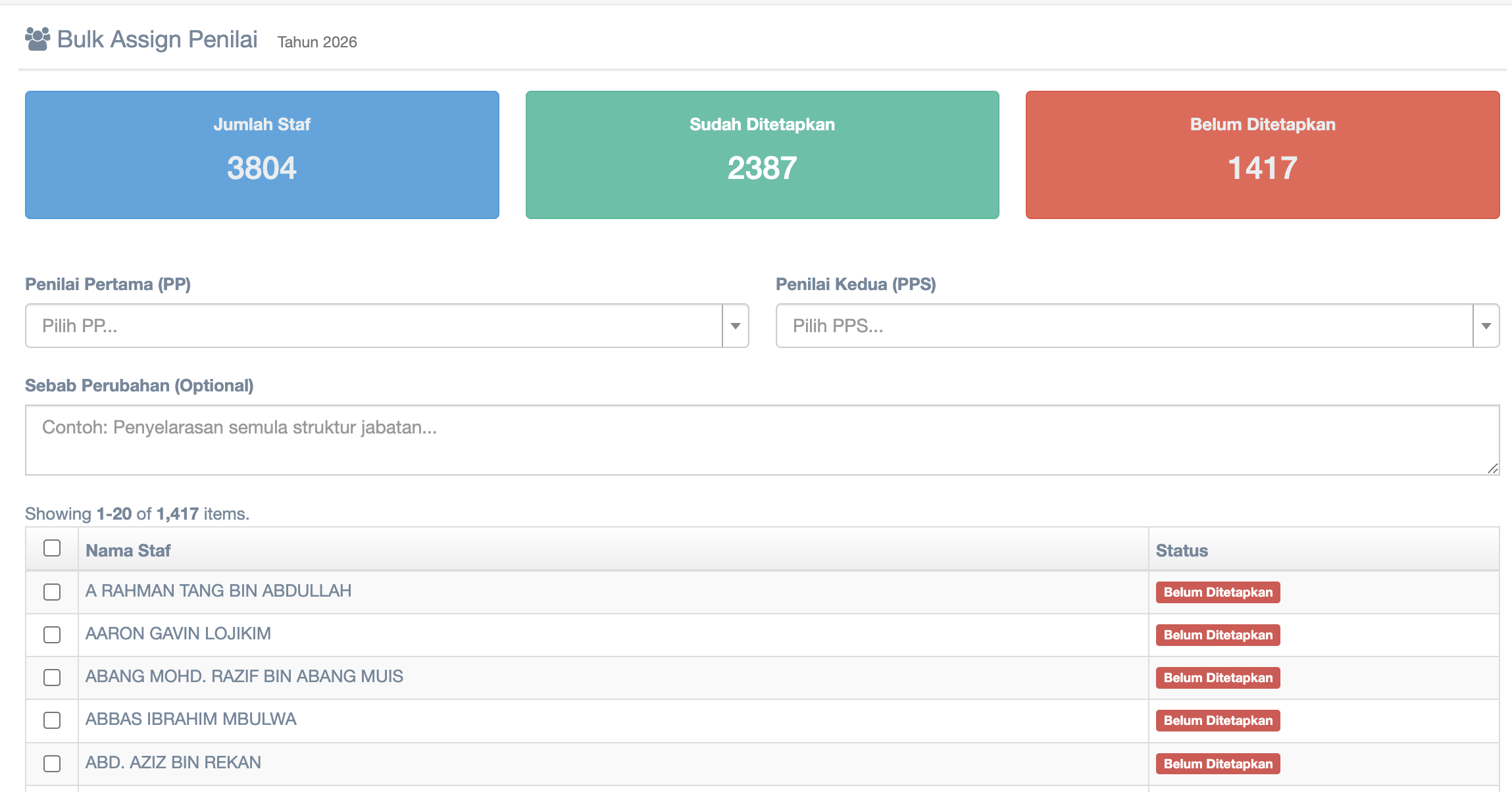 Bulk Assign Penilai