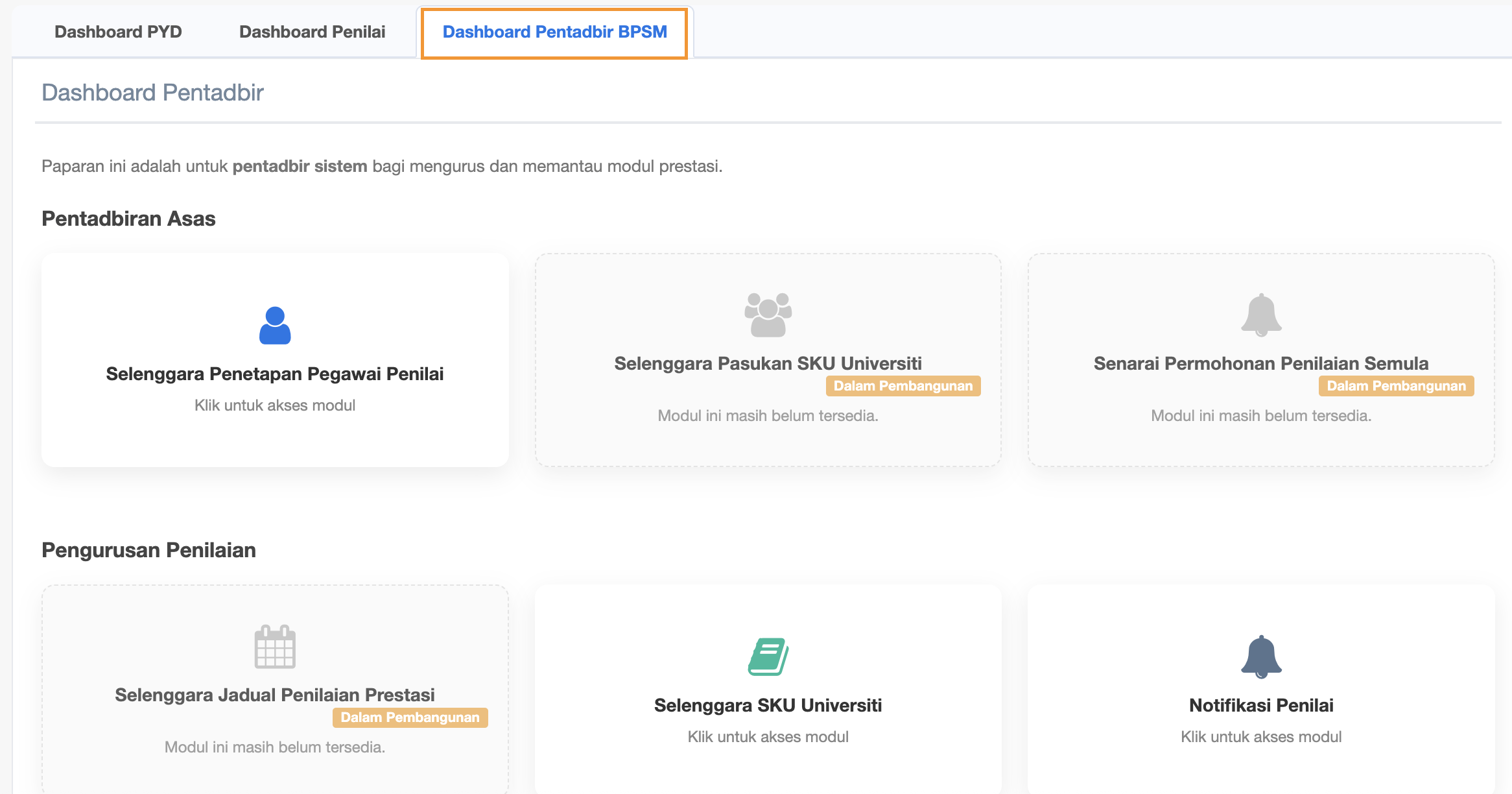 Click Dashboard Pentadbir BPSM