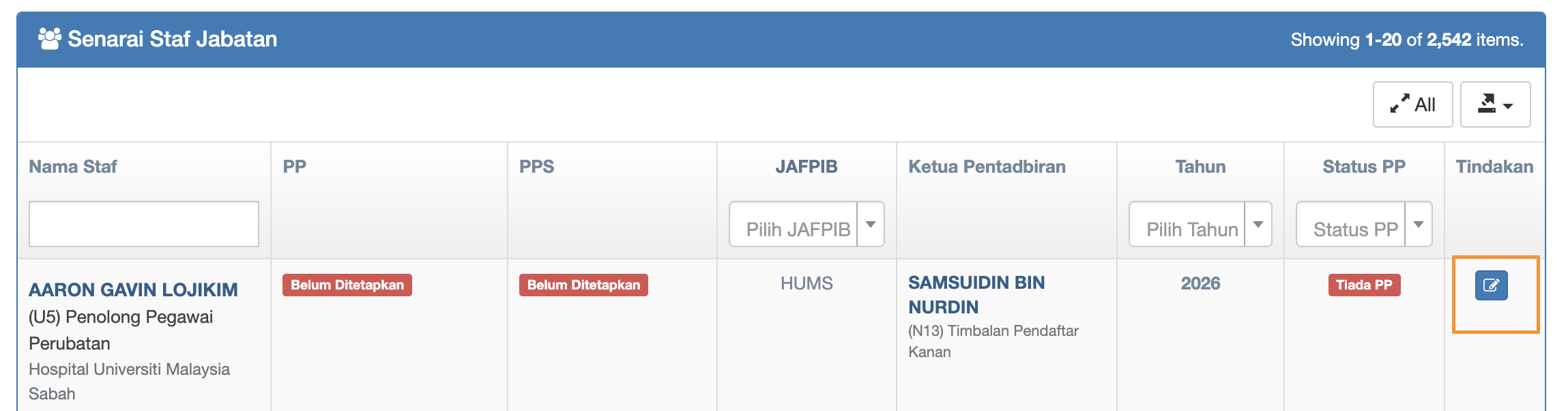Click Penilai Pertama (PP) dropdown and choose staff