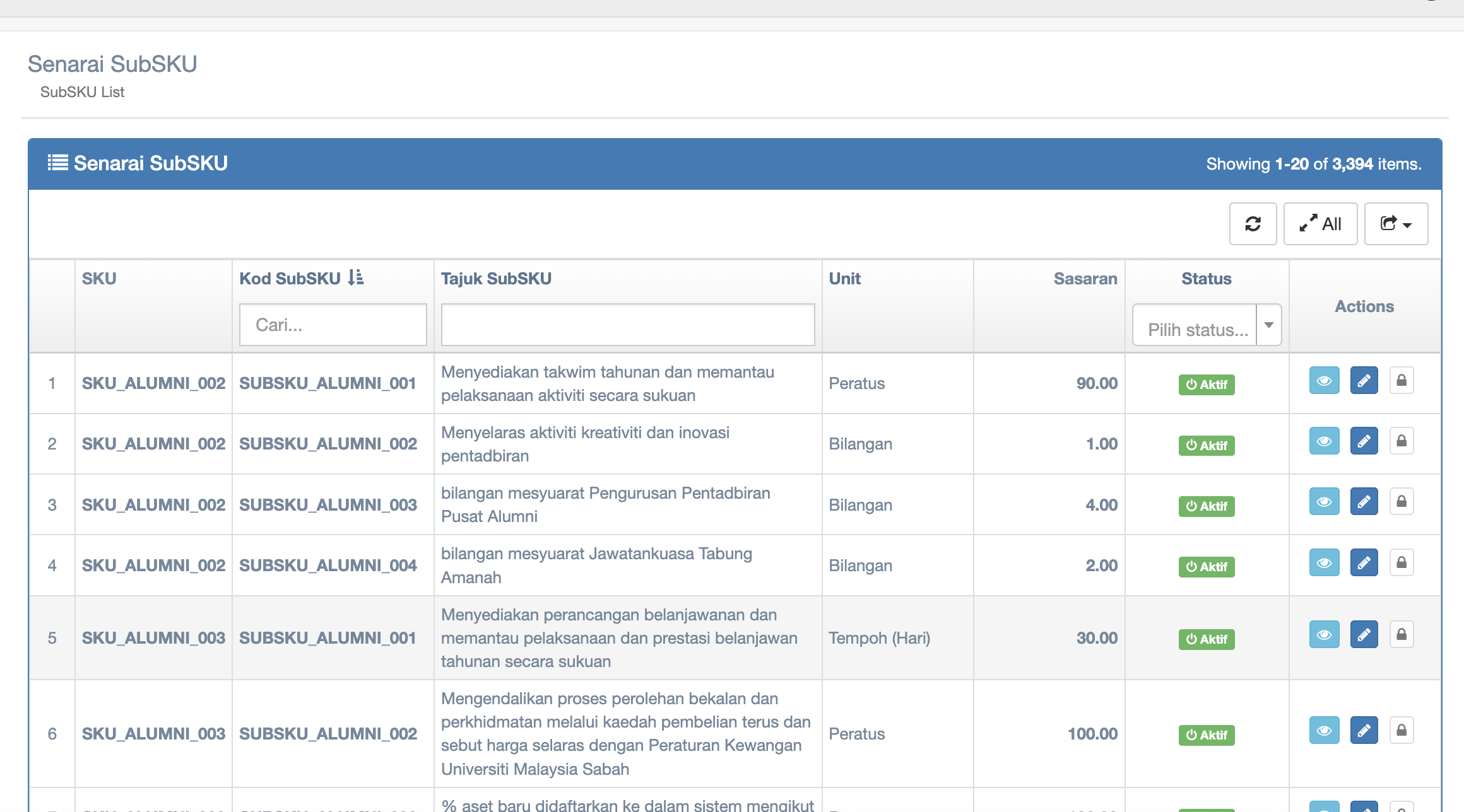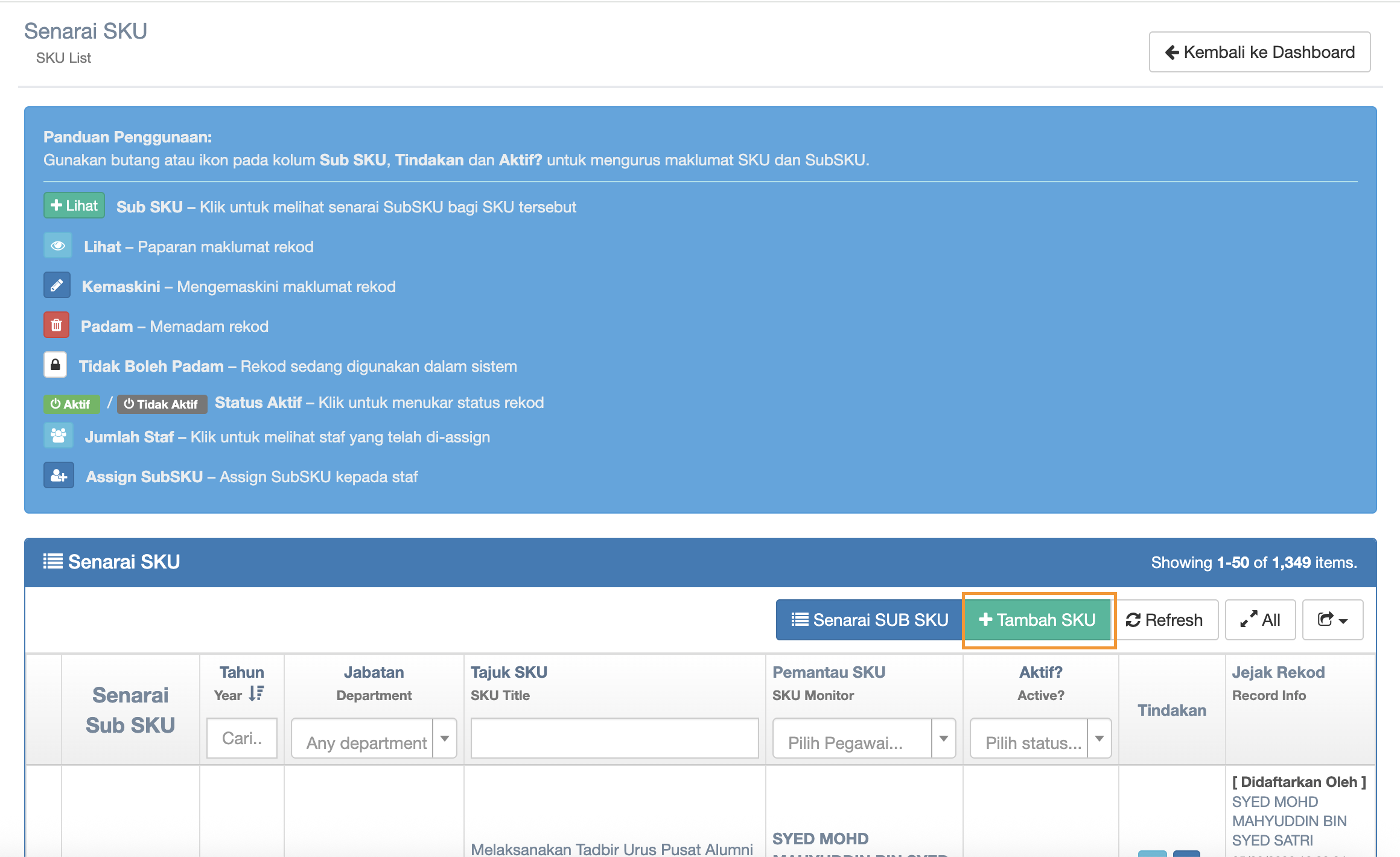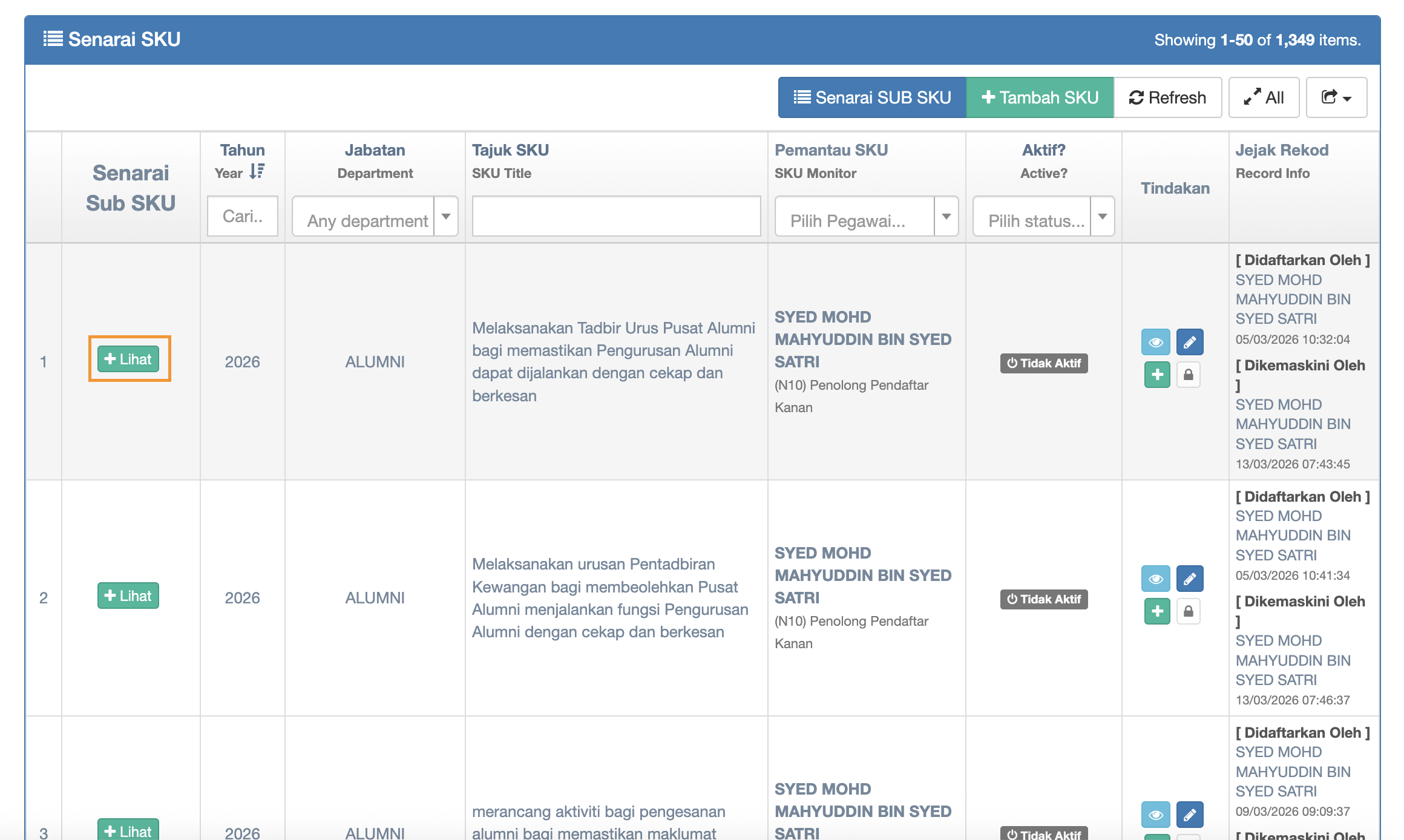 Step 6 : Click Senarai SUB SKU to view SUB SKU under the own department