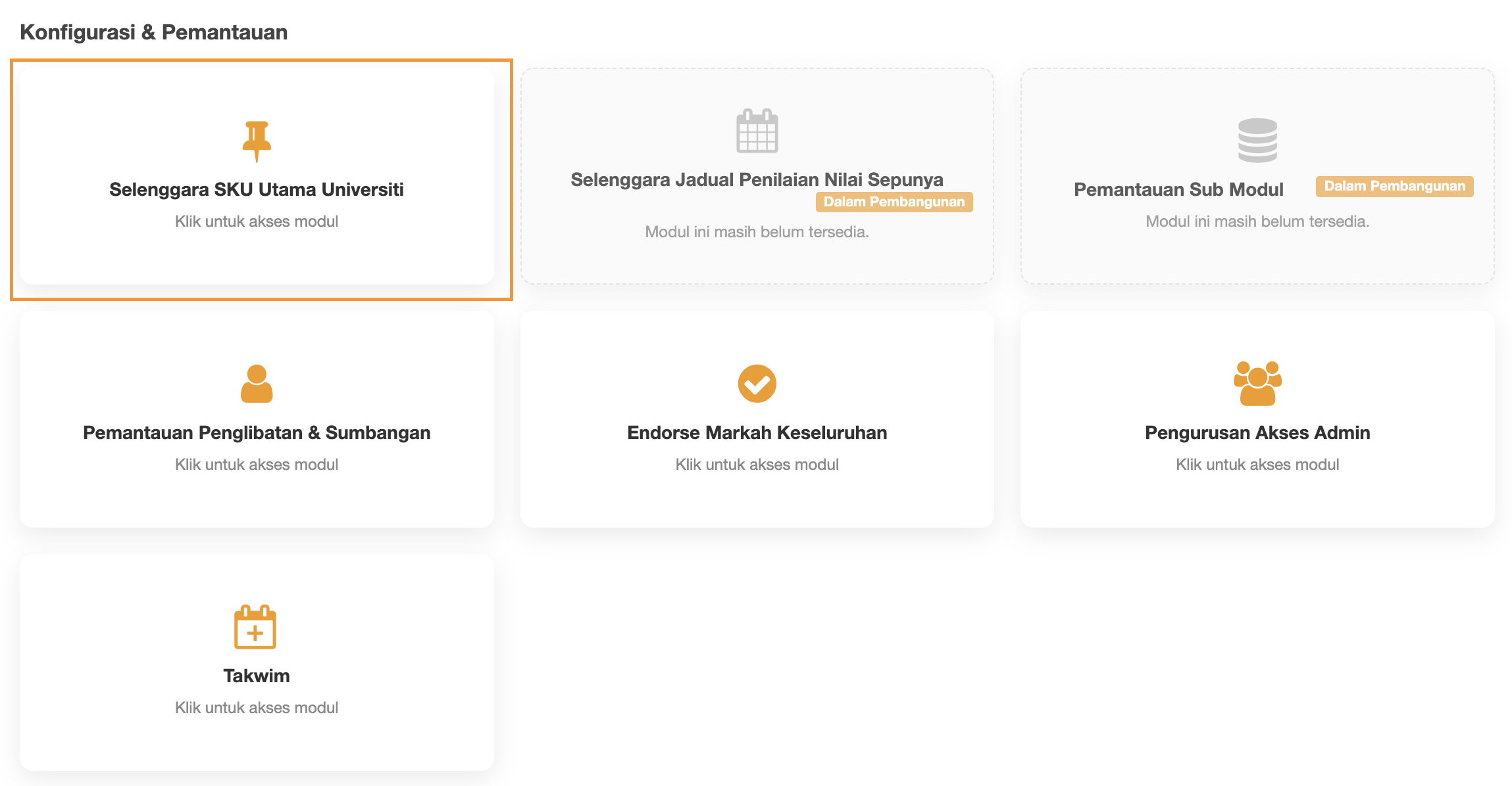 Step 4 : In Dashboard Pentadbir BPSM page, click Selenggara SKU Utama Universiti