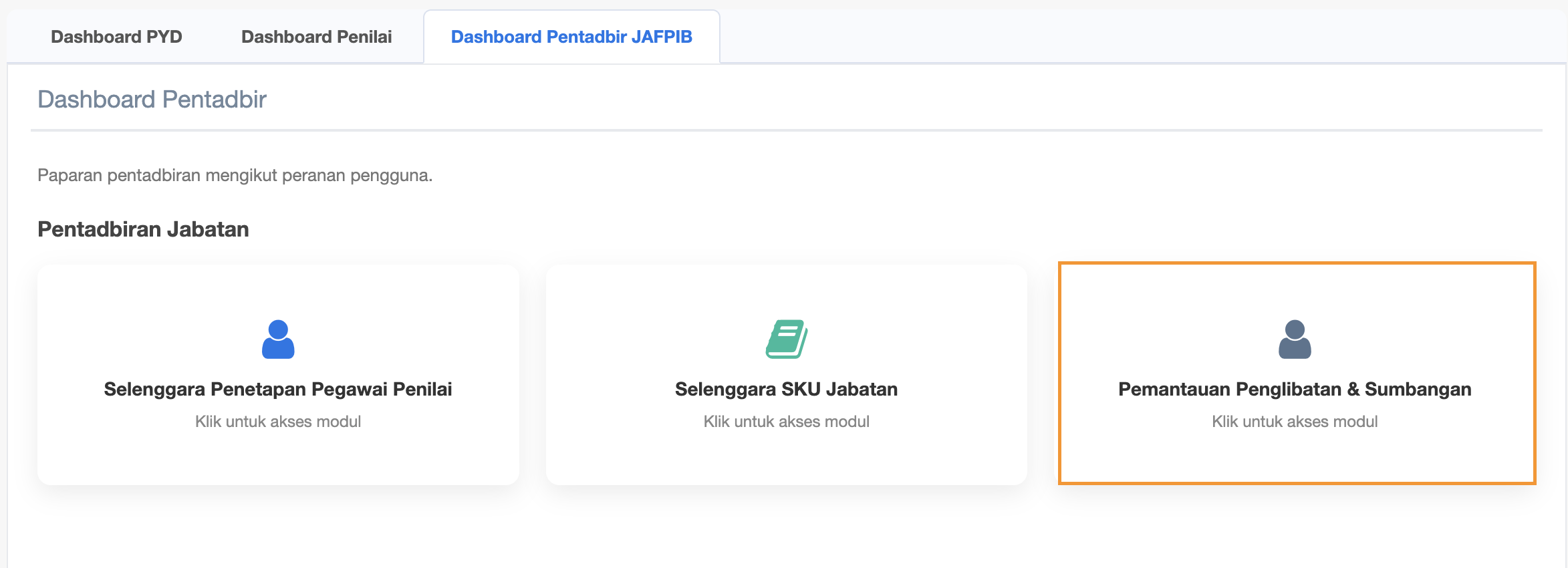 Step 3 : Click Dashboard Pentadbir JAFPIB