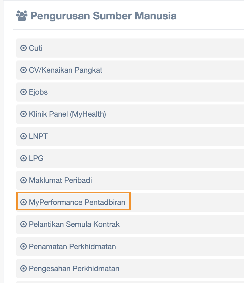 Step 2 : Click MyPerformance Pentadbiran