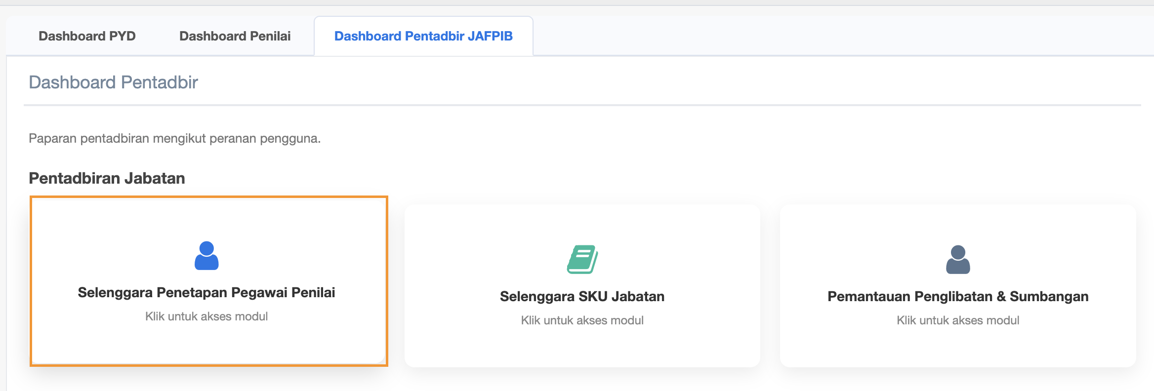 Step 3 : Click Dashboard Pentadbir JAFPIB