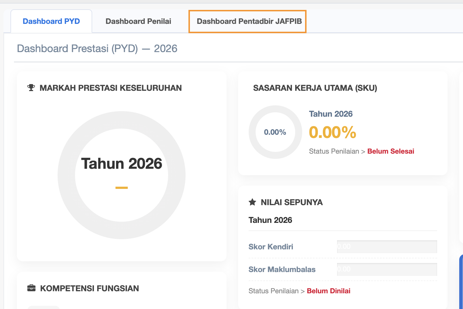 Step 4 : Three (3) SUb Menus under Dashboard Pentadbir JAFPIB