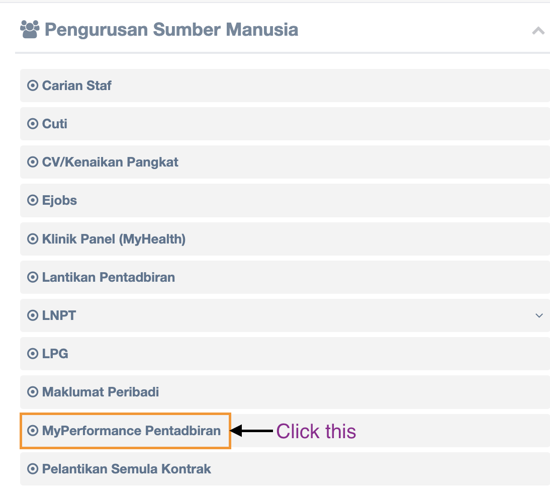 Step 2 : Click MyPerformance Pentadbiran