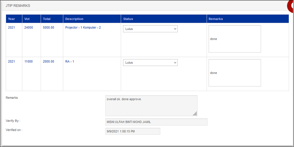12. After click the View button, scroll down until the JTIP Remarks. You can see the remarks in this page.