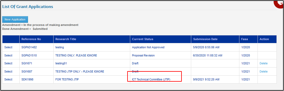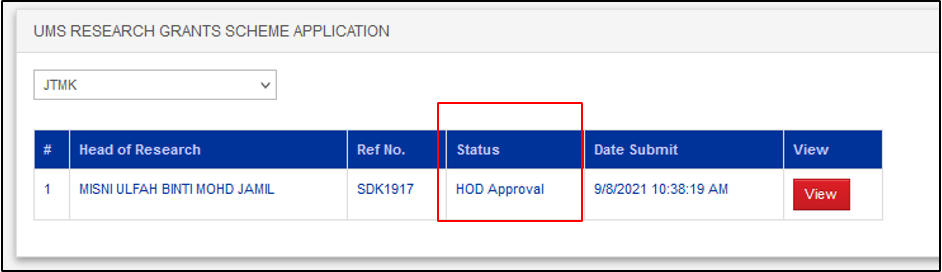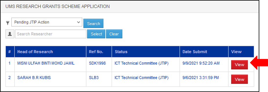 6. After the project has been approved, current status will change from HOD Approval to ICT Technical Committee (JTIP)