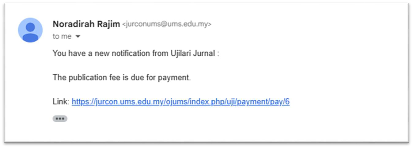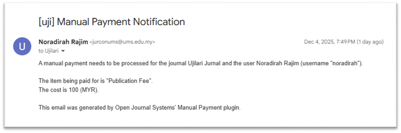 1. Notifikasi emel arahan bayaran diterima oleh Author