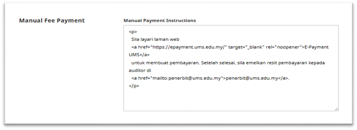 d) Edit Manual Payment Instruction mengikut kesesuaian (Paparan yang keluar di website Jurnal)