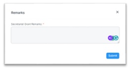 iv. ”Secretariat Grant Remarks” – Masukkan catatan/komen