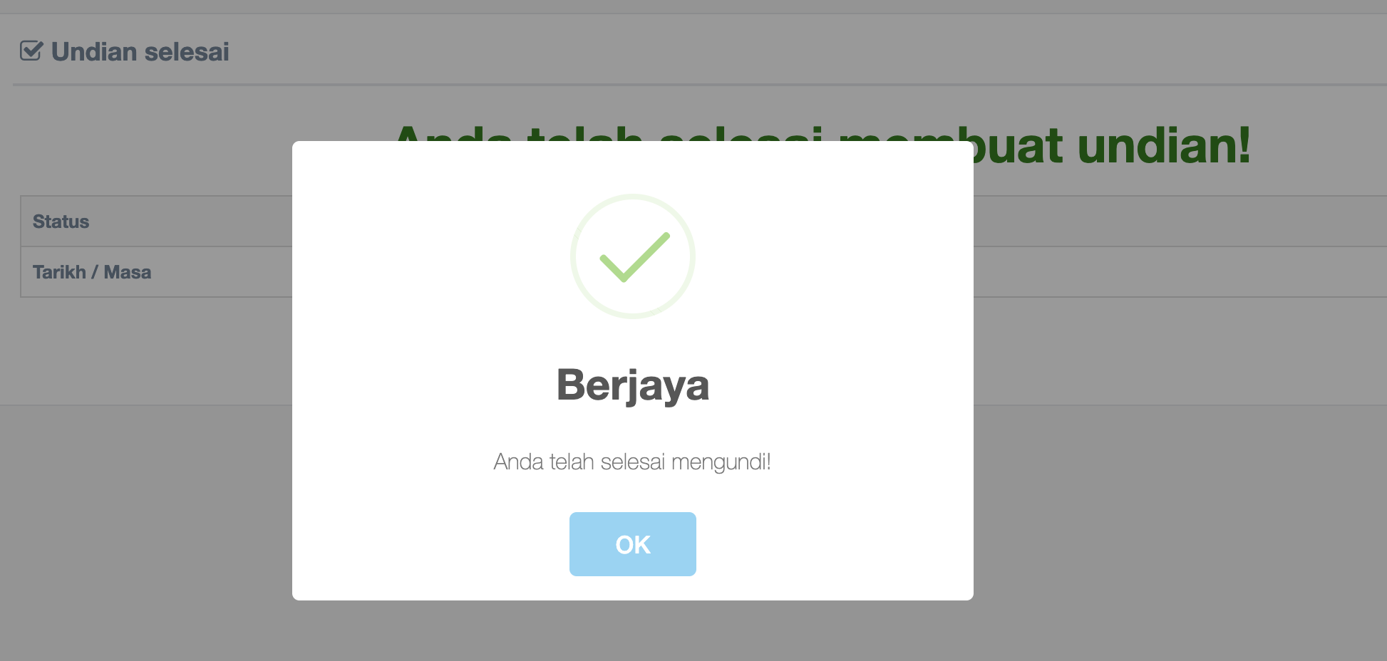 KlikĀ OK untuk pengesahan undian