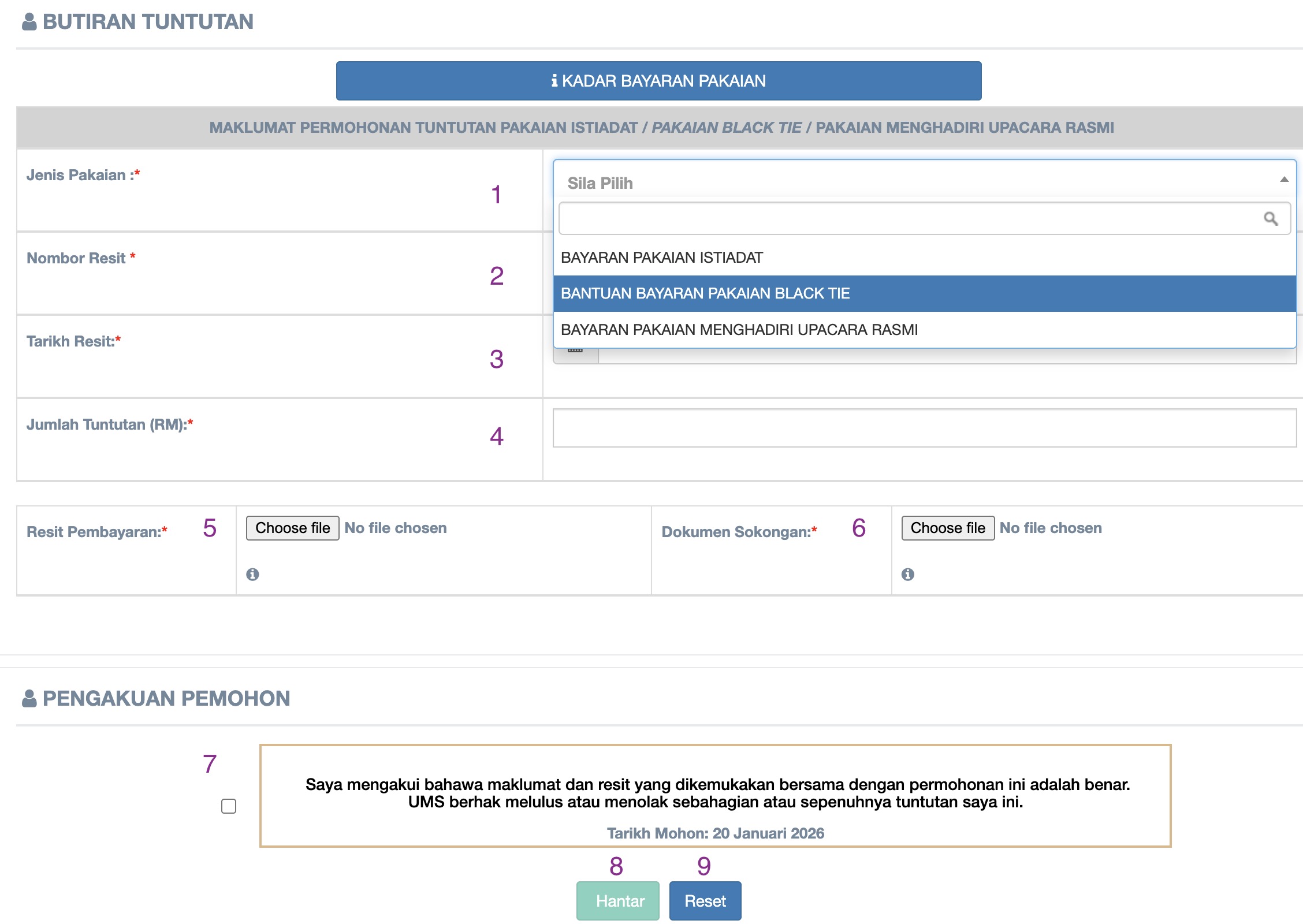 STEP 3 - Click PAKAIAN ISTIADAT, BAYARAN PAKAIAN BLACK TIE DAN BAYARAN PAKAIAN MENGHADIRI UPACARA RASMI